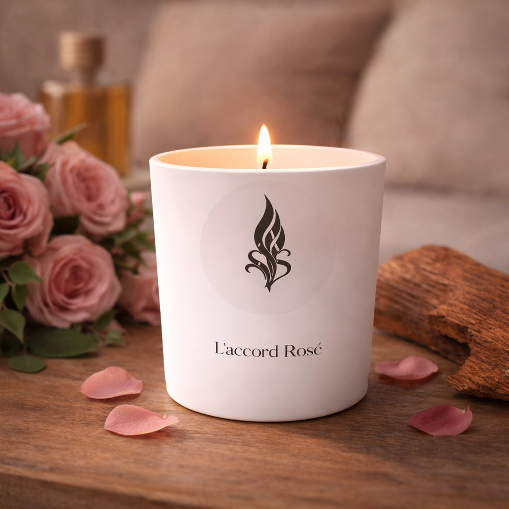 L’Accord Rosé dévoile une rose délicatement boisée, chaleureuse et apaisante, idéale pour découvrir l’univers Grasséa.